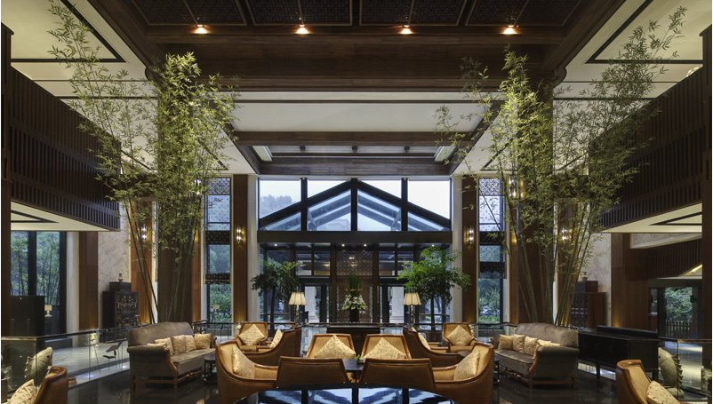 多以深色為主,墻面色彩搭配:一是以蘇州園林和京城民宅的黑、白、灰色為基調;二是在黑、白、灰基礎上以皇家住宅的紅、黃、藍、綠等作為局部色彩。新中式酒店家具主要是利用意境進行創意設計,中國傳統文化中主要受佛教、道教及儒教的影響。而意境表達主要是以道教為主,道教講究天與地,人與自然的結合。而很多的結合并不是實際的結合,而是意到既至的結合,它在空靈中可以讓人感受到實際的表達,明代很多經典的酒店家具創作都有意境的存在。