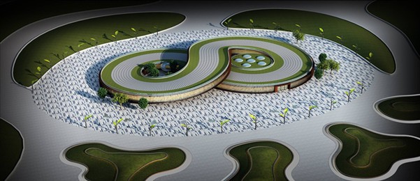 本案建筑平面采用數字“8”的平面布局,采用現代的建筑語言在兩同心圓交叉的位置對建筑的外形進行變形及功能安排。